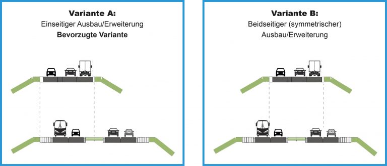 Die heute vorhandenen Anschlussstellen bleiben erhalten und werden an den neuen Querschnitt der Straße angepasst. Für die bessere Anbindung der umliegenden Gemeinden mit dem übergeordneten Straßennetz sind zudem neue Anschlussstellen geplant.